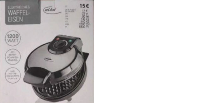 "Produkttests haben ergeben, dass sich das Netzkabel unter Umständen stark erhitzen kann. Deshalb wird dringend von einer weiteren Verwendung des Waffeleisens abgeraten. Das Produkt wurde vom 18.04.2024 bis zum 17.12.2025 in unseren Filialen verkauft. Sie können das Waffeleisen gegen Erstattung des Verkaufspreises von 15,00 € oder gegen einen anderen Artikel in jeder unserer Filialen umtauschen.
