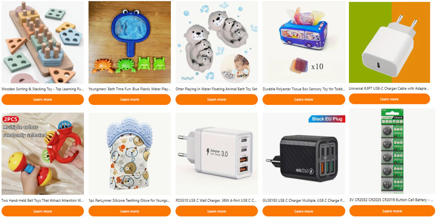 - Produkte: Kleinkinder-Spielzeug, Ladestecker und Batterien